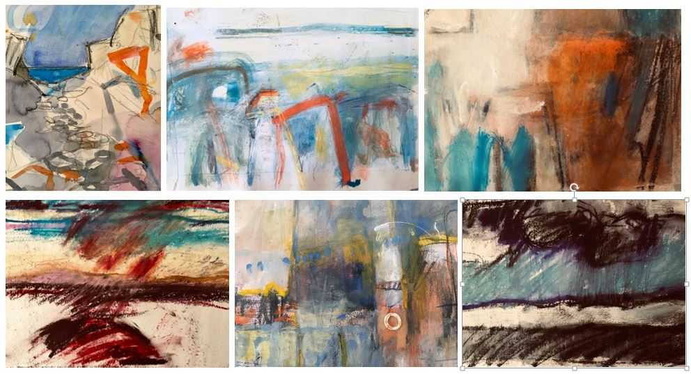 For those few not familiar with Helen’s style, its what I would term “emotive abstract”: Helen reduces landscapes to a few simple shapes and rough lines and yet her pictures still manage to capture and convey the pleasure one gets from a picturesque scene, see below. I just wish I could do the same!